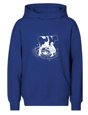 Mléko nevzniká v obchodě v regále. Nejdřív se musí od šikovných zemědělců a farmářů na regál dostat. Pokud máš vztah k zemědělským zvířatům a víš třeba, jak podojit krávu, tak neváhej a kupuj triko s krávou.
