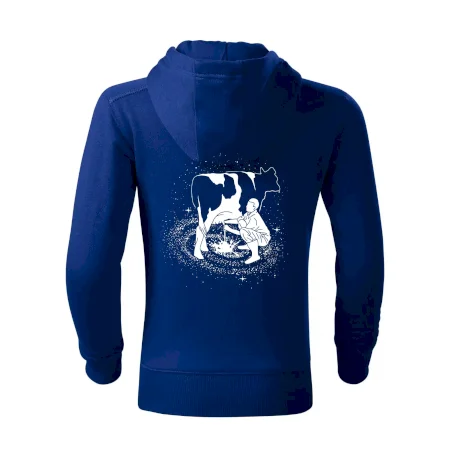 Mléko nevzniká v obchodě v regále. Nejdřív se musí od šikovných zemědělců a farmářů na regál dostat. Pokud máš vztah k zemědělským zvířatům a víš třeba, jak podojit krávu, tak neváhej a kupuj triko s krávou.