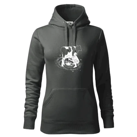 Mléko nevzniká v obchodě v regále. Nejdřív se musí od šikovných zemědělců a farmářů na regál dostat. Pokud máš vztah k zemědělským zvířatům a víš třeba, jak podojit krávu, tak neváhej a kupuj triko s krávou.