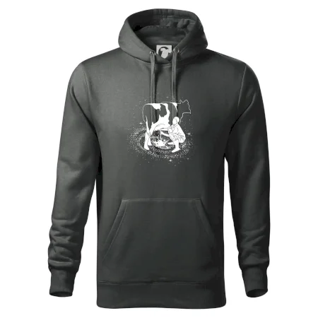 Mléko nevzniká v obchodě v regále. Nejdřív se musí od šikovných zemědělců a farmářů na regál dostat. Pokud máš vztah k zemědělským zvířatům a víš třeba, jak podojit krávu, tak neváhej a kupuj triko s krávou.