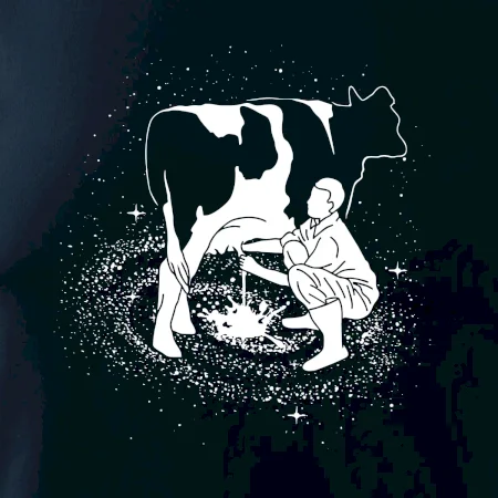 Mléko nevzniká v obchodě v regále. Nejdřív se musí od šikovných zemědělců a farmářů na regál dostat. Pokud máš vztah k zemědělským zvířatům a víš třeba, jak podojit krávu, tak neváhej a kupuj triko s krávou.