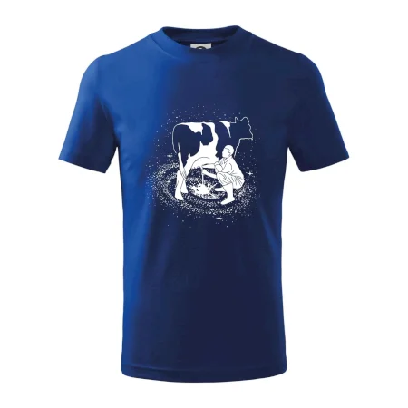 Mléko nevzniká v obchodě v regále. Nejdřív se musí od šikovných zemědělců a farmářů na regál dostat. Pokud máš vztah k zemědělským zvířatům a víš třeba, jak podojit krávu, tak neváhej a kupuj triko s krávou.