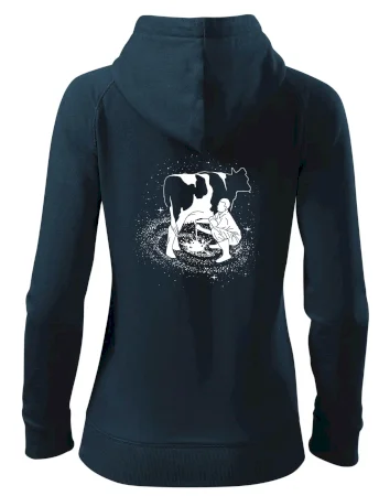 Mléko nevzniká v obchodě v regále. Nejdřív se musí od šikovných zemědělců a farmářů na regál dostat. Pokud máš vztah k zemědělským zvířatům a víš třeba, jak podojit krávu, tak neváhej a kupuj triko s krávou.