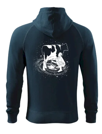 Mléko nevzniká v obchodě v regále. Nejdřív se musí od šikovných zemědělců a farmářů na regál dostat. Pokud máš vztah k zemědělským zvířatům a víš třeba, jak podojit krávu, tak neváhej a kupuj triko s krávou.