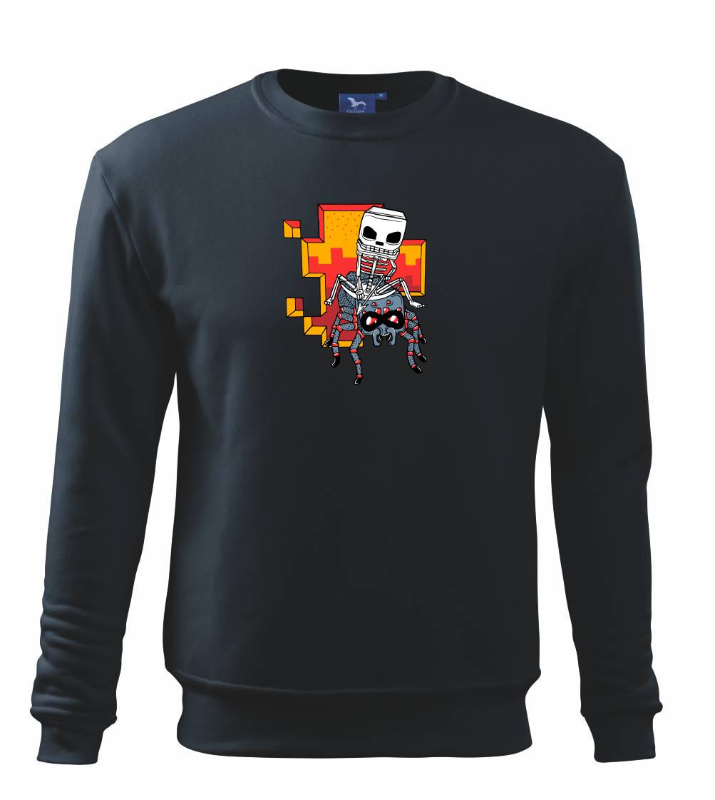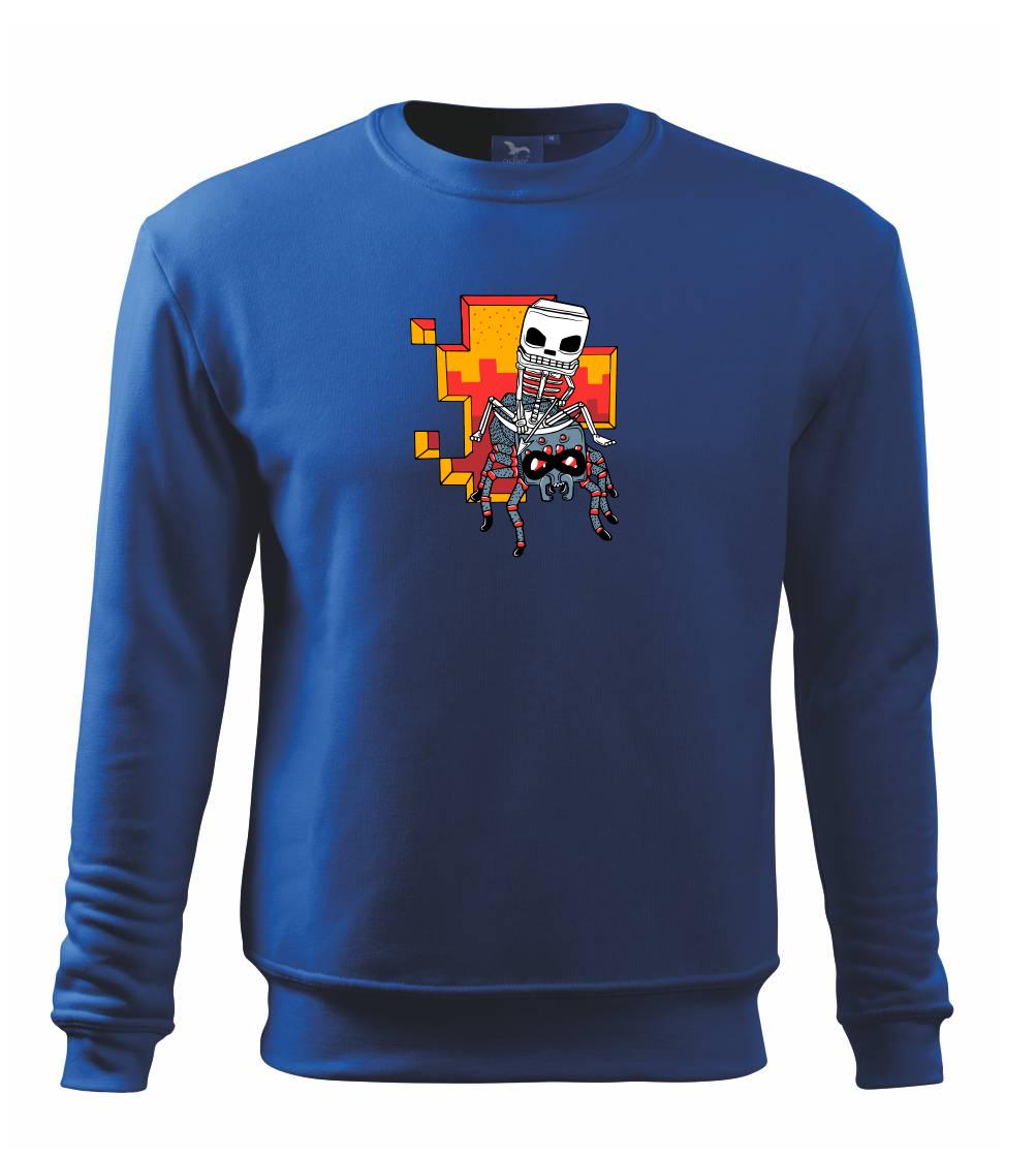 Tričko, na ktorom je kostlivec na pavúkovi. Pavúk sa nechcel nechať skrotiť, ale kostlivec ho nakoniec zdolal. Tričko s kostlivcom idúcim na pavúkovi.