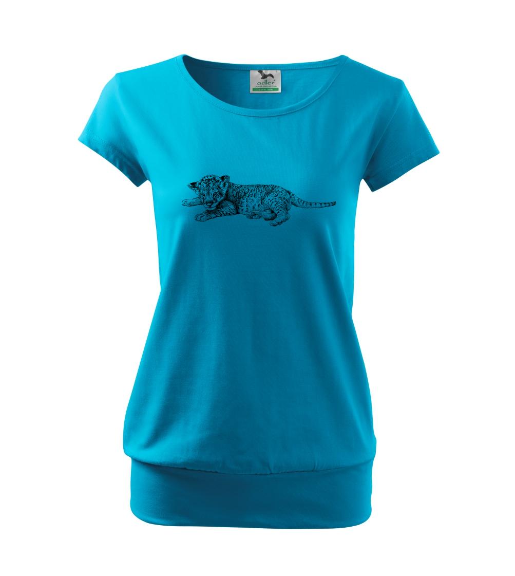 Trendové dámske tričko s veľmi krátkym rukávom, voľnejšieho strihu, v dolnom kraji všité do širokého lemu. Okrúhly priekrčník s úzkym lemom zo zhodného materiálu.