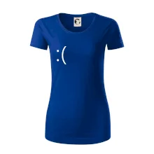 Dámske tričko s ľahko priliehavým strihom, ktorý pôsobí elegantne a skvele padne. Tento typ trička má kratšie rukávy a hlbší výstrih zakončený jemným lemovaním.