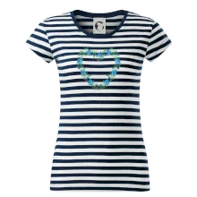 Trendové dámske tričko s veľmi krátkym rukávom, voľnejšieho strihu, v dolnom kraji všité do širokého lemu. Okrúhly priekrčník s úzkym lemom zo zhodného materiálu.