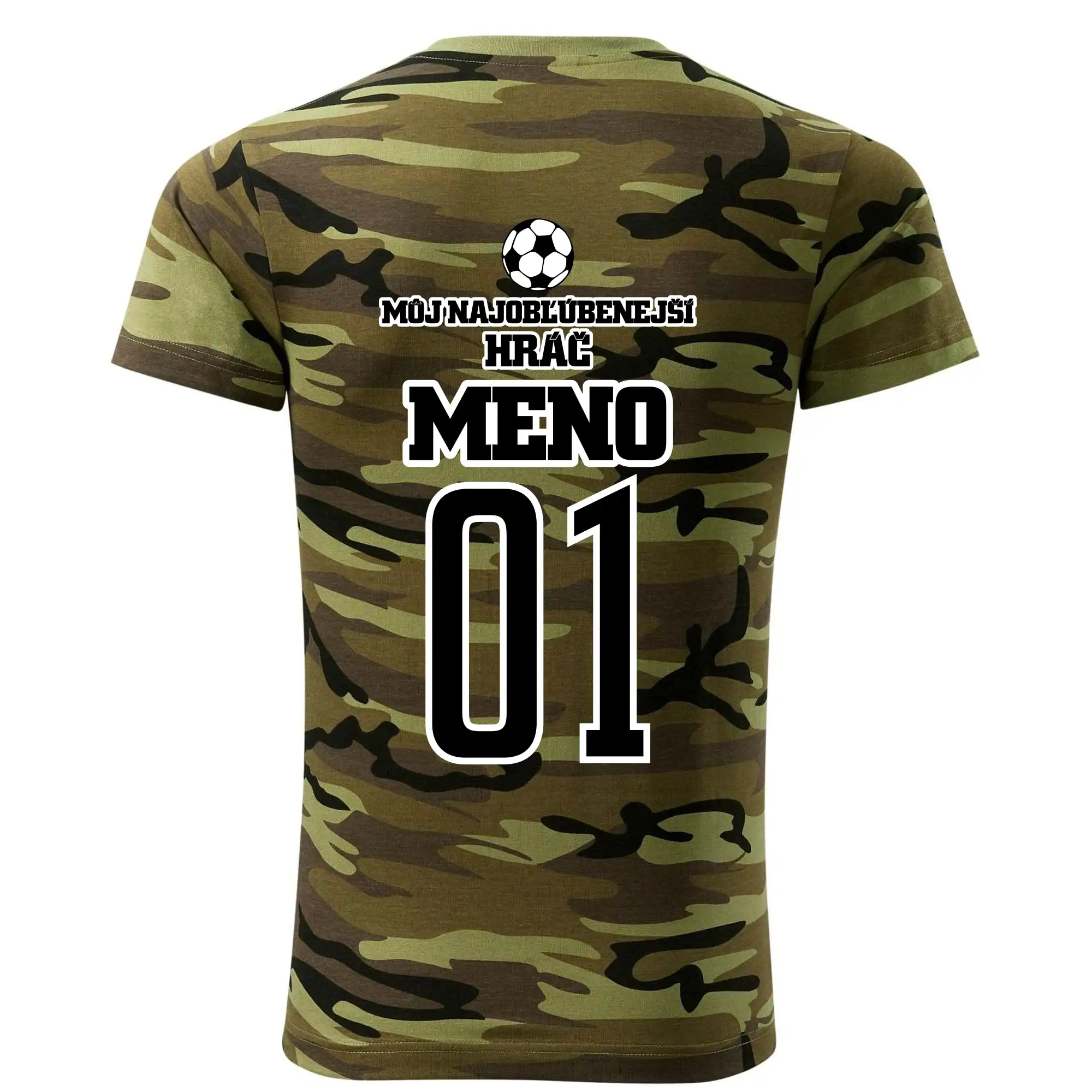 Tričko strednej gramáže vo farbách camouflage. Strih s bočnými švami. Lem priekrčníku z rebrového úpletu s prídavkom 5% elastanu. Vnútorná časť zadného priekrčníka začistená páskou vo farbe camouflage.