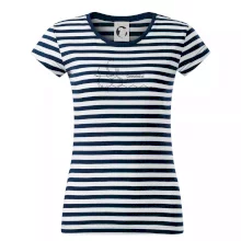 Trendové dámske tričko s veľmi krátkym rukávom, voľnejšieho strihu, v dolnom kraji všité do širokého lemu. Okrúhly priekrčník s úzkym lemom zo zhodného materiálu.