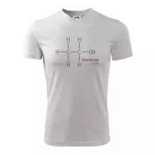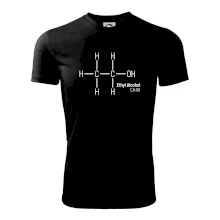 Na tričku skvělá připomínka toho, že každá party má svou cenu. Pro chemiky, barmany, studenty i rodiče — každý už někdy testoval jeho účinky na vlastní kůži.