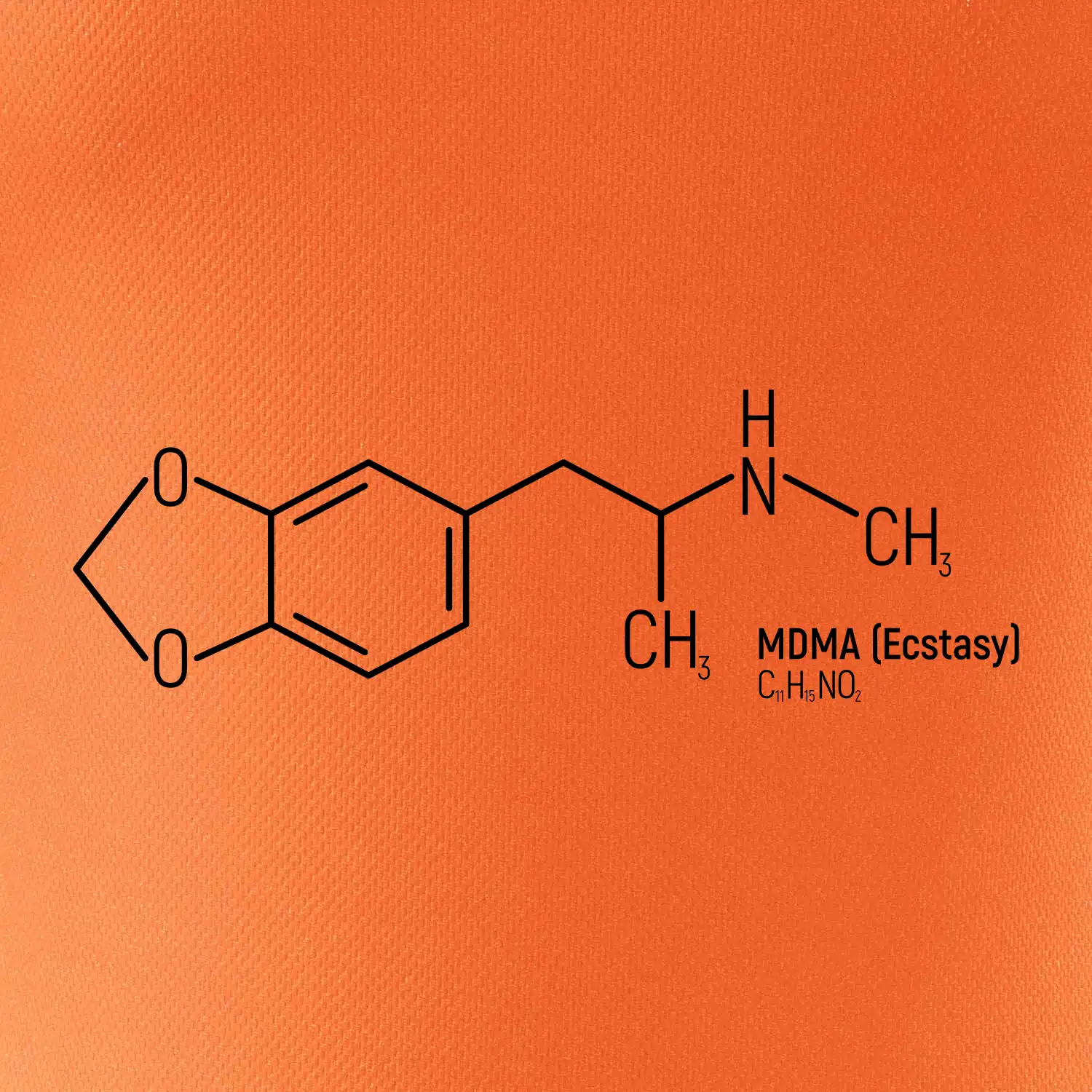 MDMA – vzorec, co říká mozku: "Dneska je všechno super!" Úzkosti pryč, deprese na dovolené, láska ke všem včetně barmana i dlaždiček na záchodě.