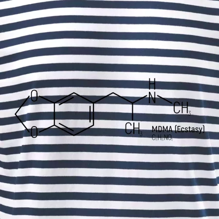 MDMA – vzorec, co říká mozku: "Dneska je všechno super!" Úzkosti pryč, deprese na dovolené, láska ke všem včetně barmana i dlaždiček na záchodě.