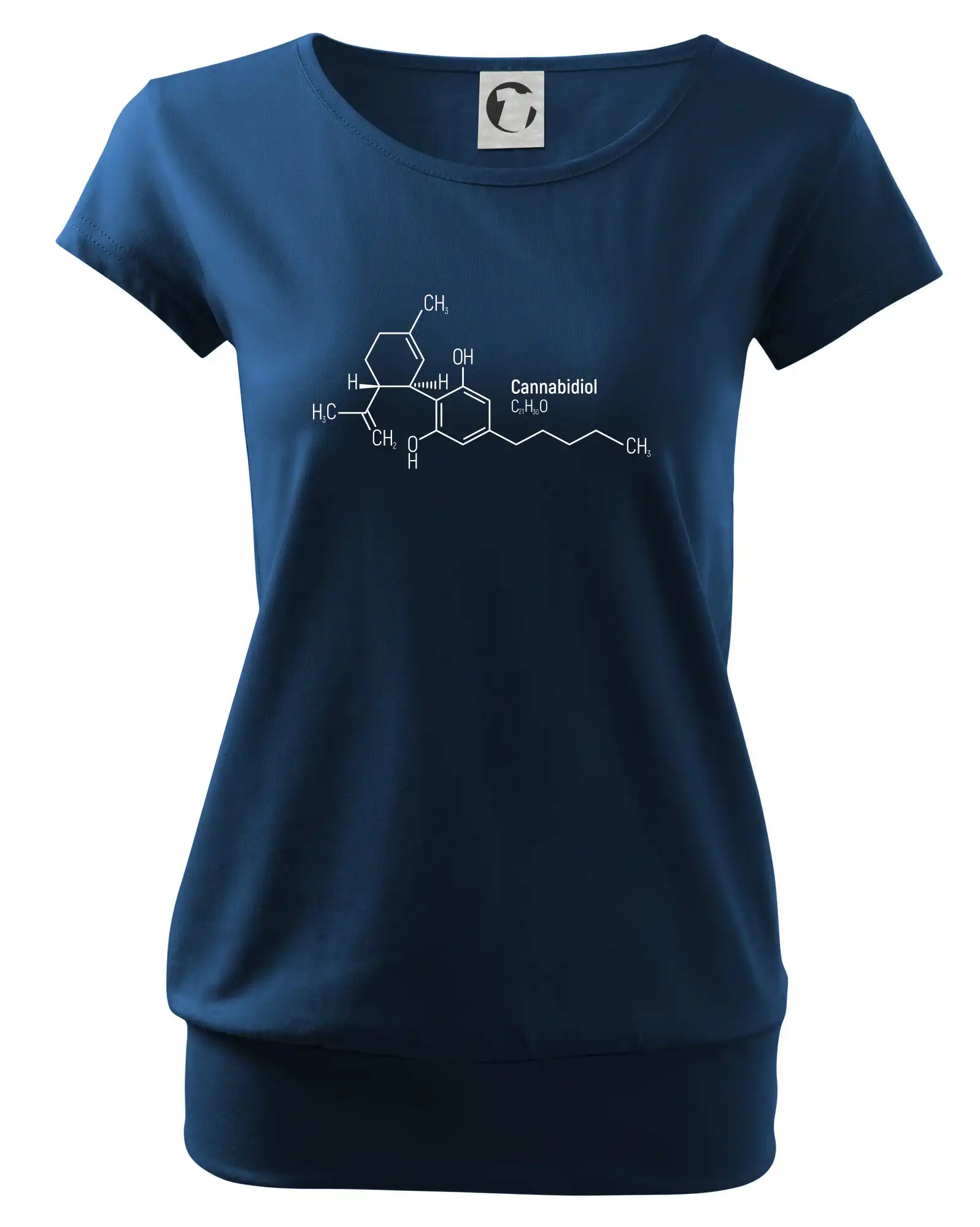 Trendové dámske tričko s veľmi krátkym rukávom, voľnejšieho strihu, v dolnom kraji všité do širokého lemu. Okrúhly priekrčník s úzkym lemom zo zhodného materiálu.