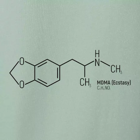 MDMA – vzorec, co říká mozku: "Dneska je všechno super!" Úzkosti pryč, deprese na dovolené, láska ke všem včetně barmana i dlaždiček na záchodě.