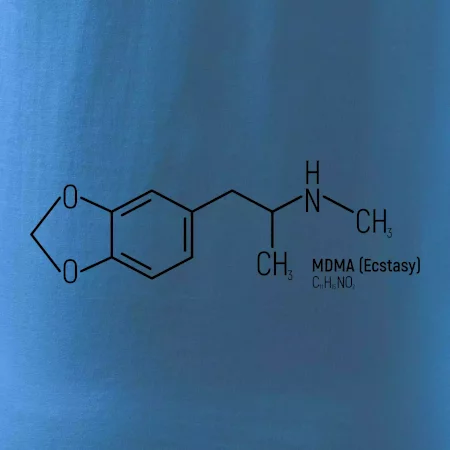 MDMA – vzorec, co říká mozku: "Dneska je všechno super!" Úzkosti pryč, deprese na dovolené, láska ke všem včetně barmana i dlaždiček na záchodě.