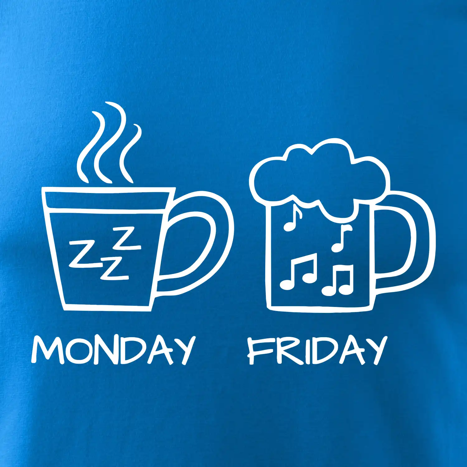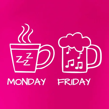 Pondelok si nevieš predstaviť bez kávy a piatok bez piva? Tak toto tričko je presne pre Teba! Vyberaj z rôznych farieb tričiek alebo mikín.