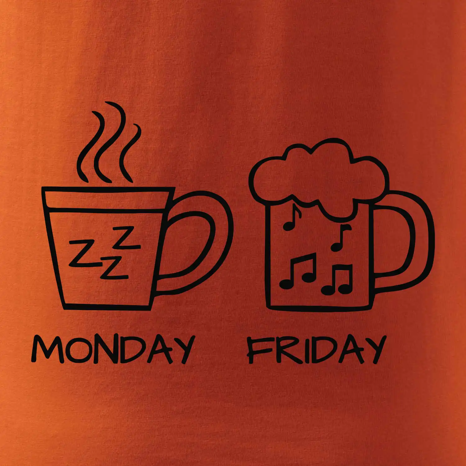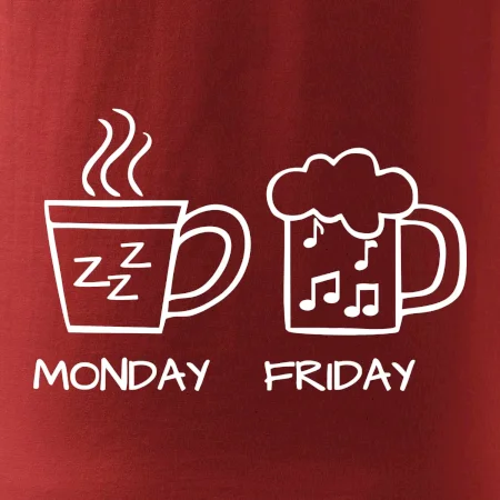 Pondelok si nevieš predstaviť bez kávy a piatok bez piva? Tak toto tričko je presne pre Teba! Vyberaj z rôznych farieb tričiek alebo mikín.