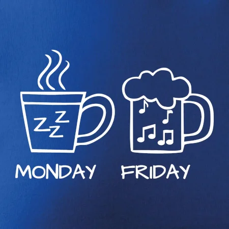Pondelok si nevieš predstaviť bez kávy a piatok bez piva? Tak toto tričko je presne pre Teba! Vyberaj z rôznych farieb tričiek alebo mikín.