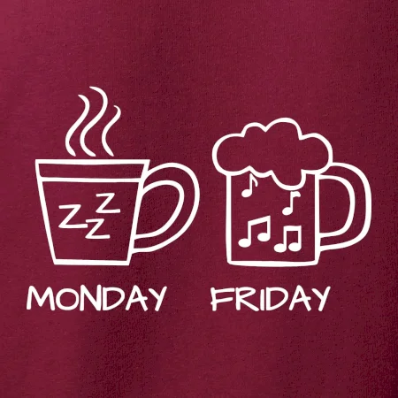 Pondelok si nevieš predstaviť bez kávy a piatok bez piva? Tak toto tričko je presne pre Teba! Vyberaj z rôznych farieb tričiek alebo mikín.