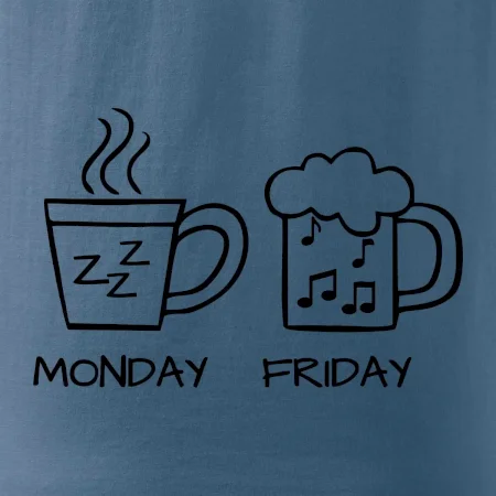 Pondelok si nevieš predstaviť bez kávy a piatok bez piva? Tak toto tričko je presne pre Teba! Vyberaj z rôznych farieb tričiek alebo mikín.