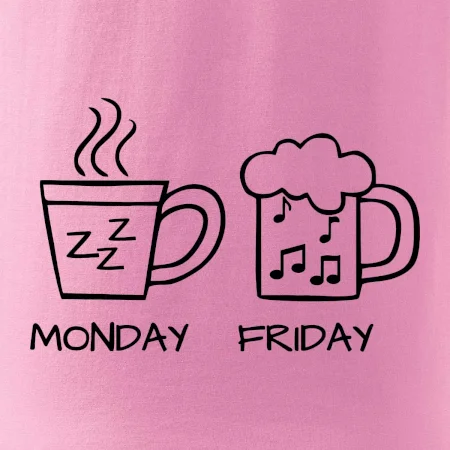 Pondelok si nevieš predstaviť bez kávy a piatok bez piva? Tak toto tričko je presne pre Teba! Vyberaj z rôznych farieb tričiek alebo mikín.