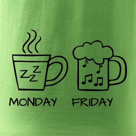 Pondelok si nevieš predstaviť bez kávy a piatok bez piva? Tak toto tričko je presne pre Teba! Vyberaj z rôznych farieb tričiek alebo mikín.