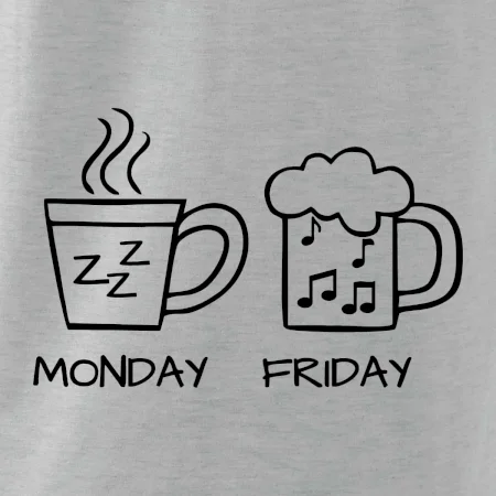 Pondelok si nevieš predstaviť bez kávy a piatok bez piva? Tak toto tričko je presne pre Teba! Vyberaj z rôznych farieb tričiek alebo mikín.