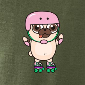 Mops a kolieskové korčule
