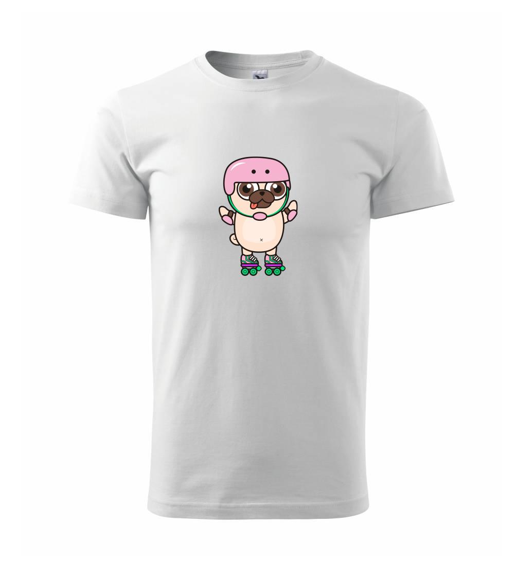 Mops a kolieskové korčule