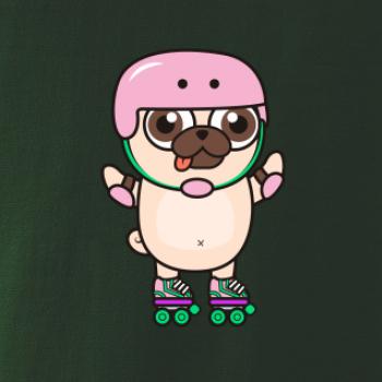 Mops a kolieskové korčule