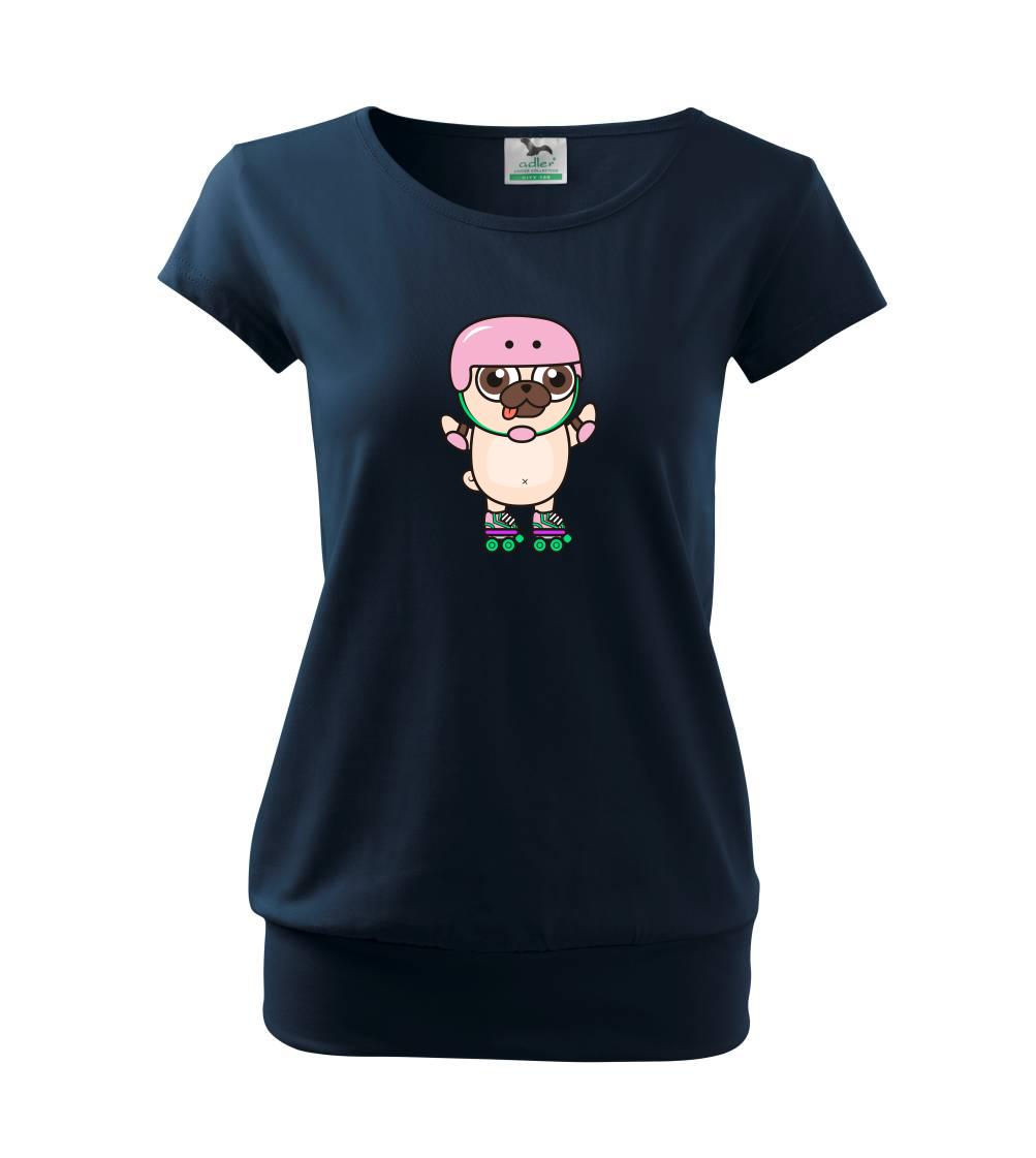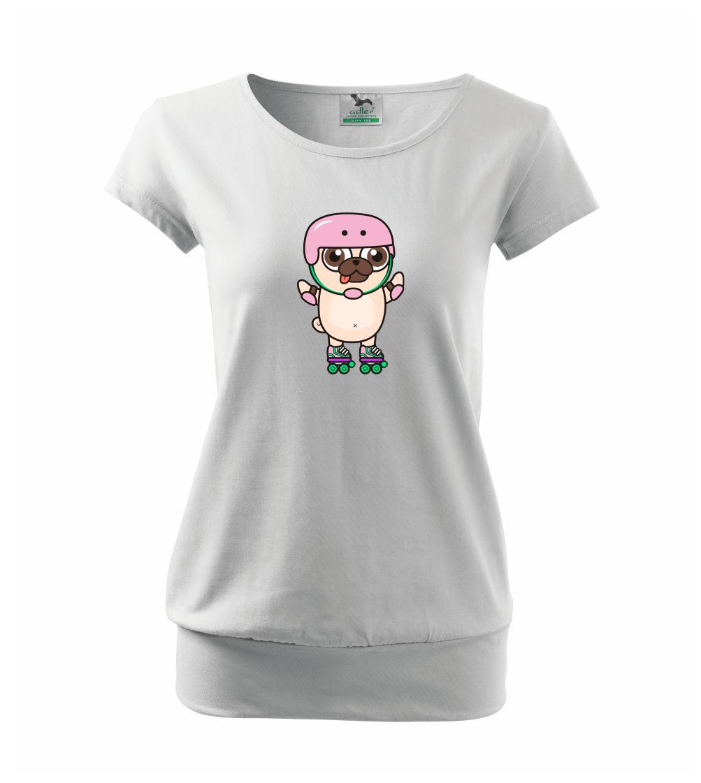 Mops a kolieskové korčule