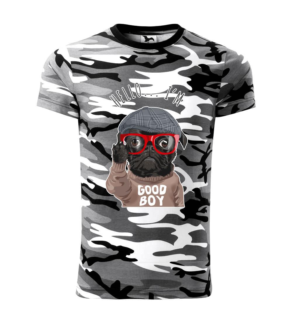 Tričko so psom je vhodný darček pre psíčkara. Tričko s mopsom a nápisom "Hello I'm good boy".