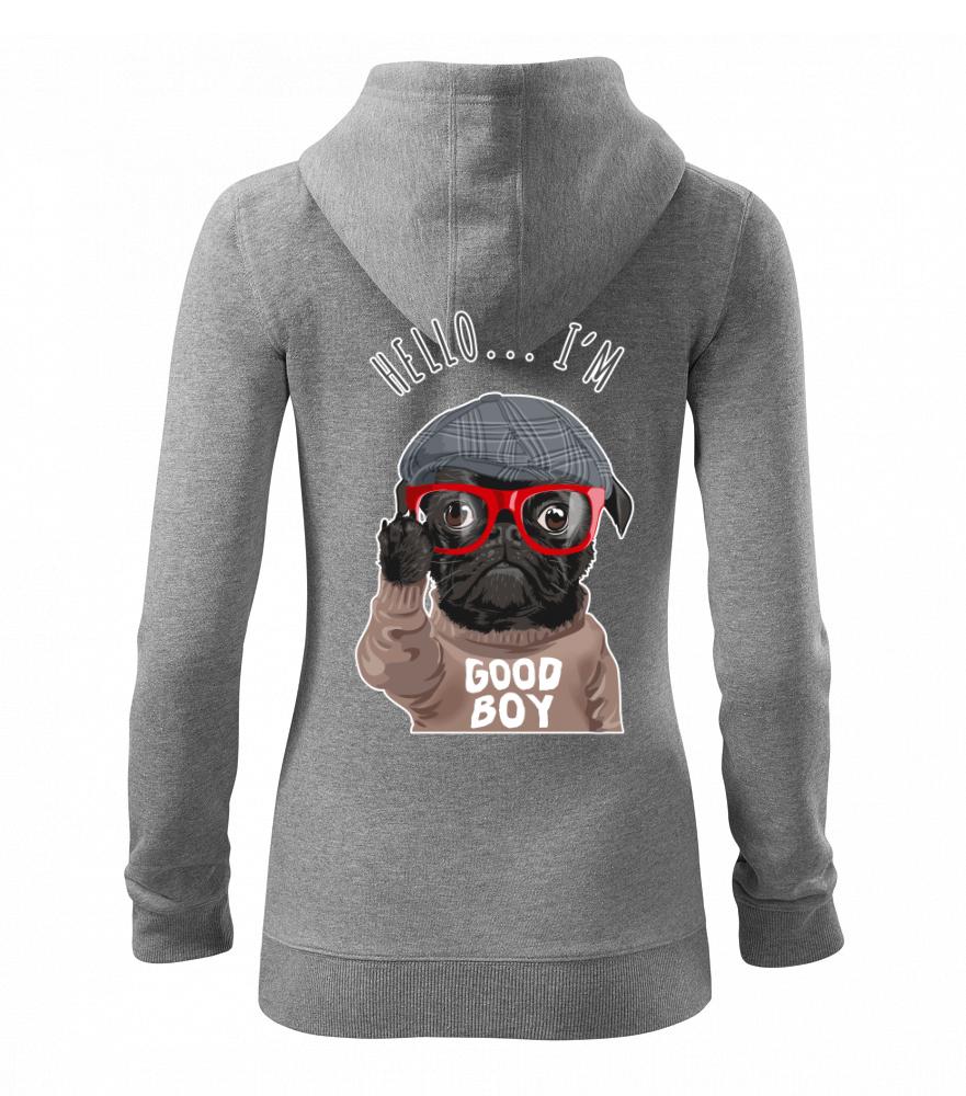 Tričko so psom je vhodný darček pre psíčkara. Tričko s mopsom a nápisom "Hello I'm good boy".