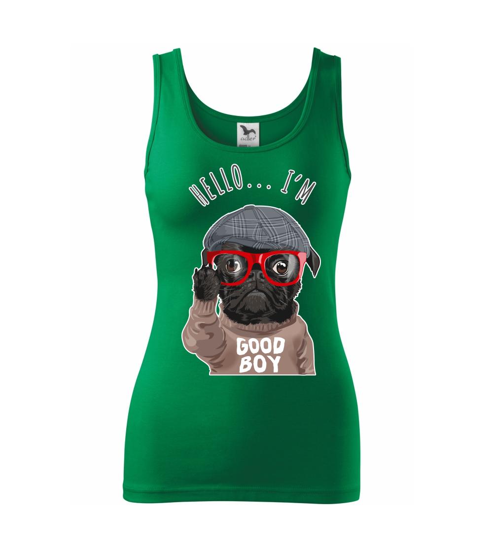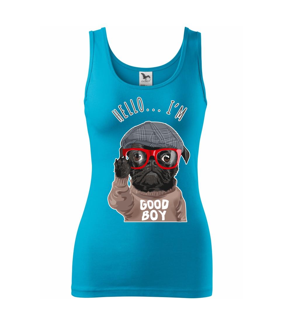 Tričko so psom je vhodný darček pre psíčkara. Tričko s mopsom a nápisom "Hello I'm good boy".