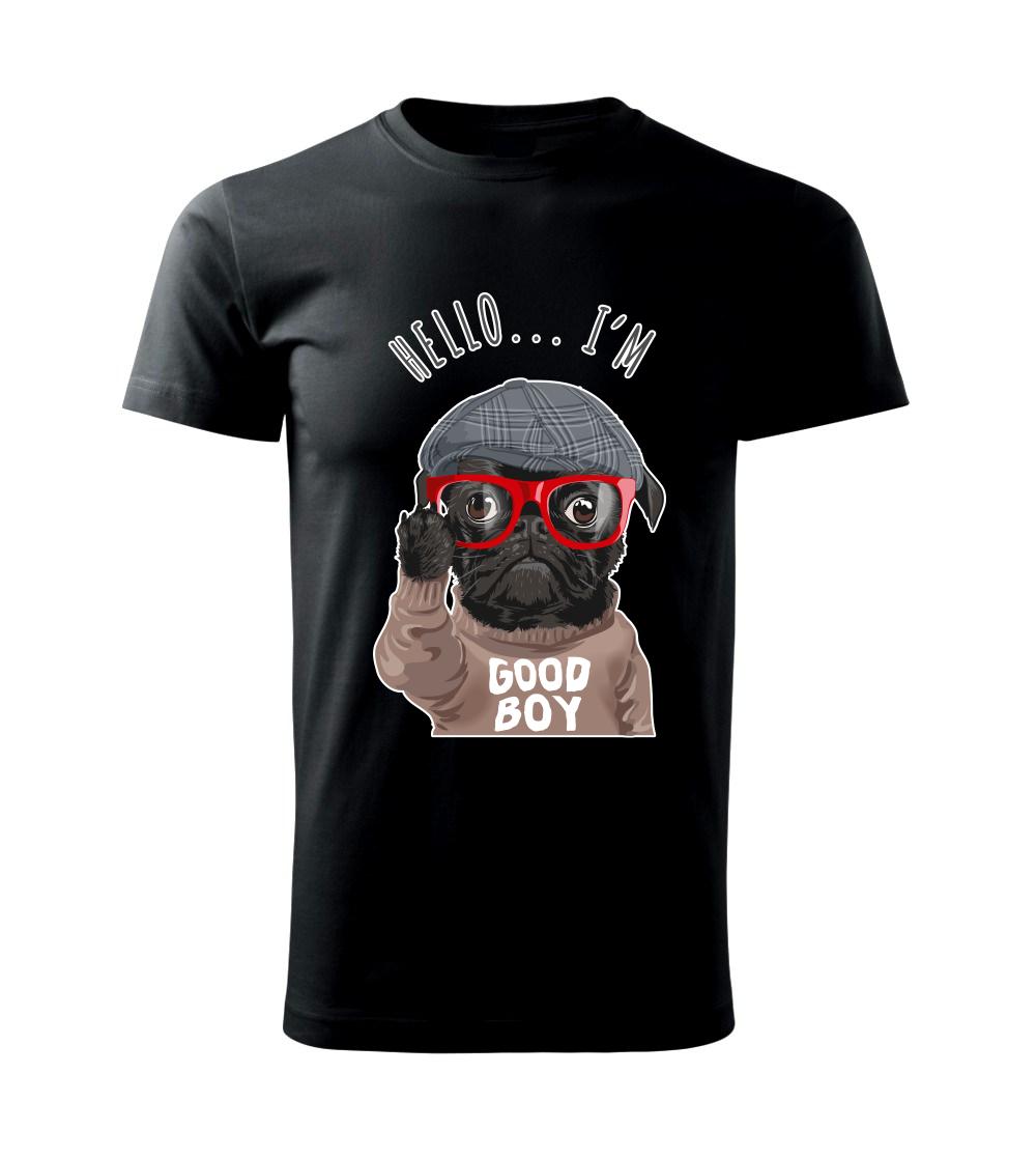 Tričko so psom je vhodný darček pre psíčkara. Tričko s mopsom a nápisom "Hello I'm good boy".
