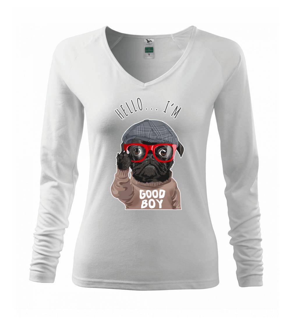Tričko so psom je vhodný darček pre psíčkara. Tričko s mopsom a nápisom "Hello I'm good boy".