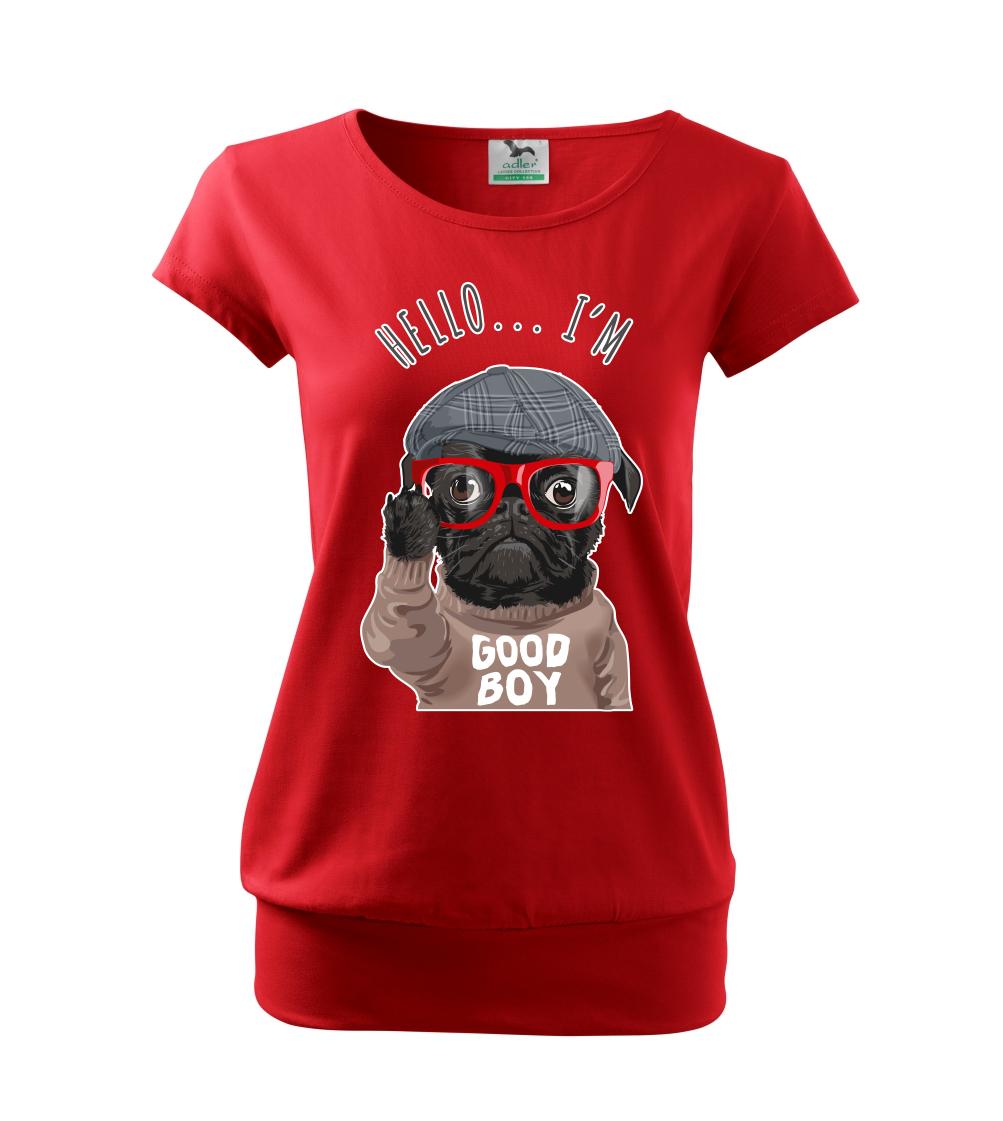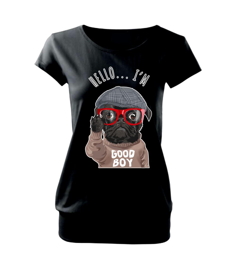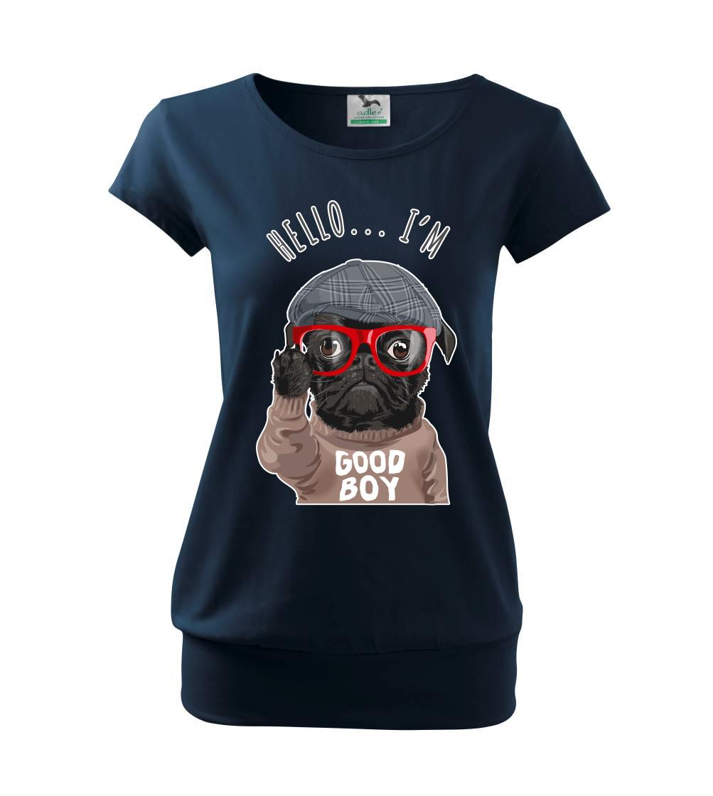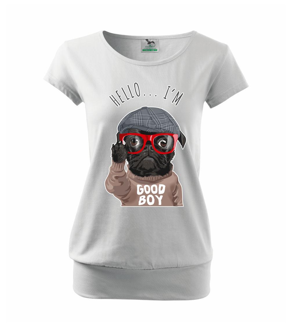 Tričko so psom je vhodný darček pre psíčkara. Tričko s mopsom a nápisom "Hello I'm good boy".