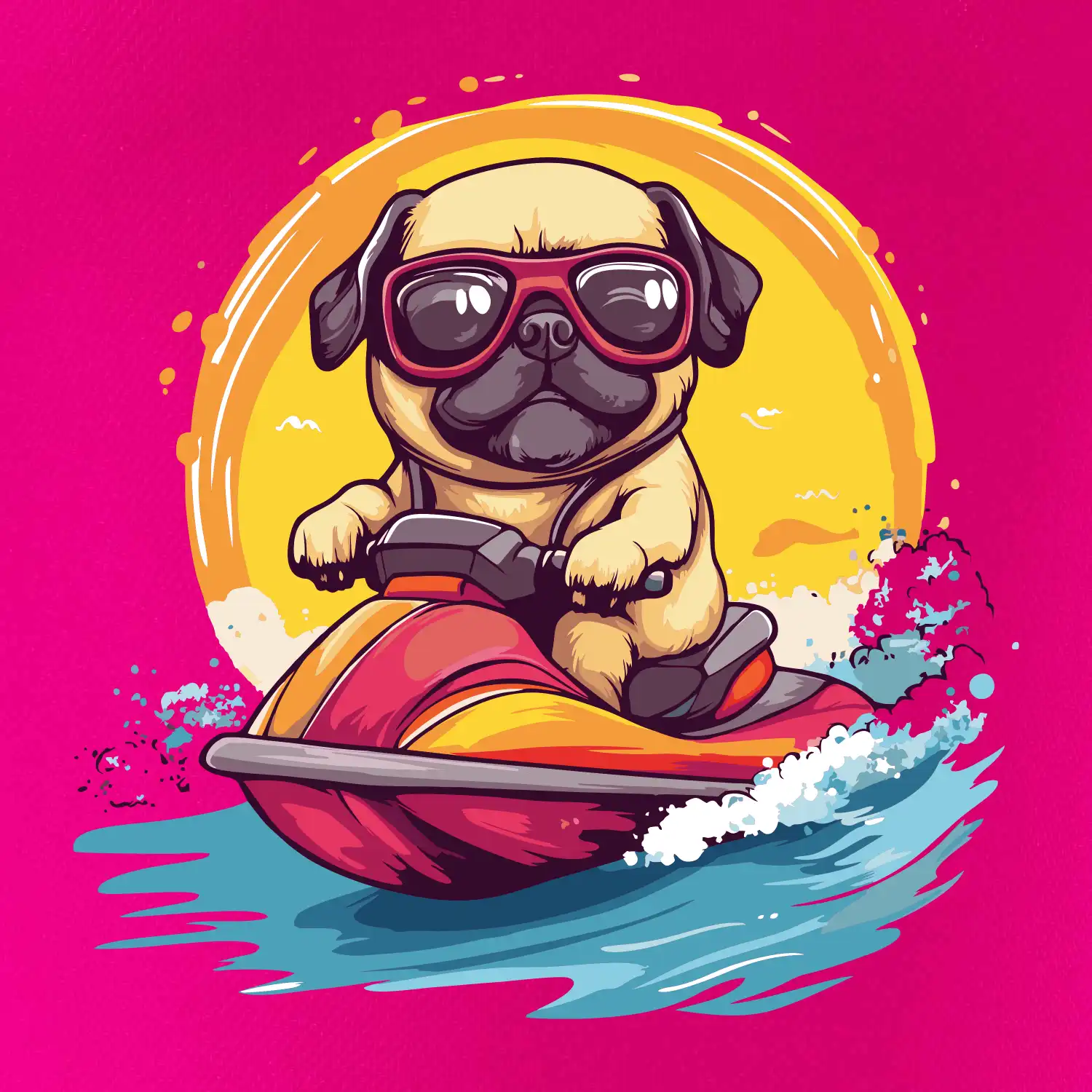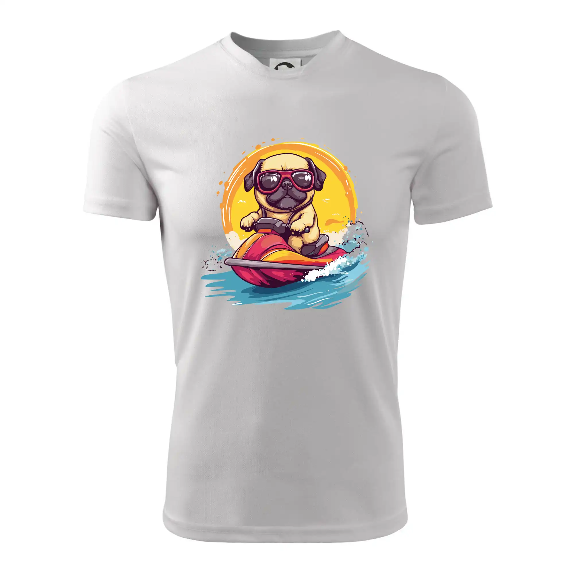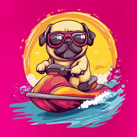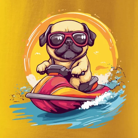 Mops na vodnom skútri