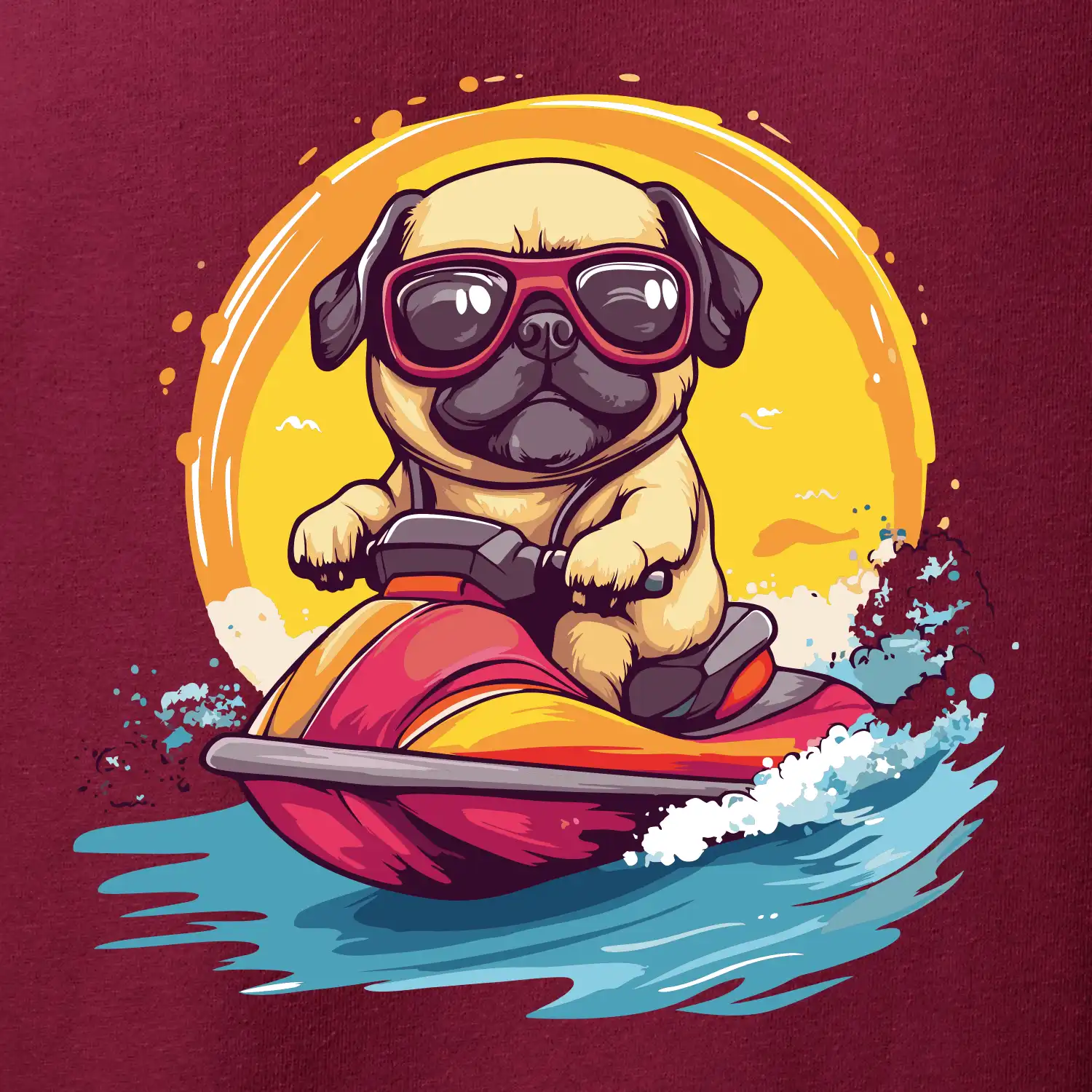 Mops na vodnom skútri