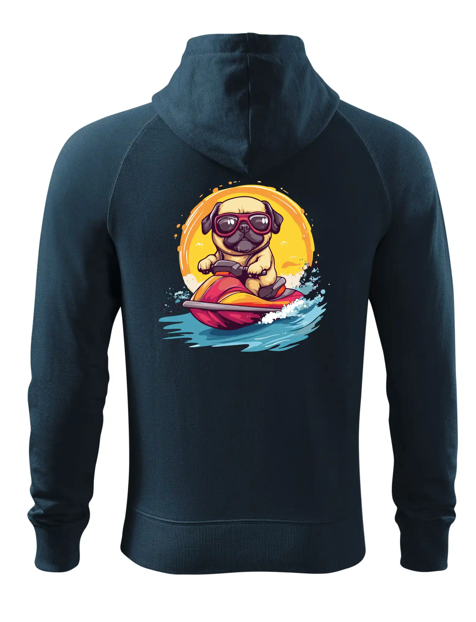Mops na vodnom skútri