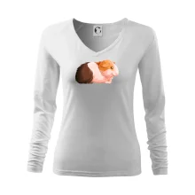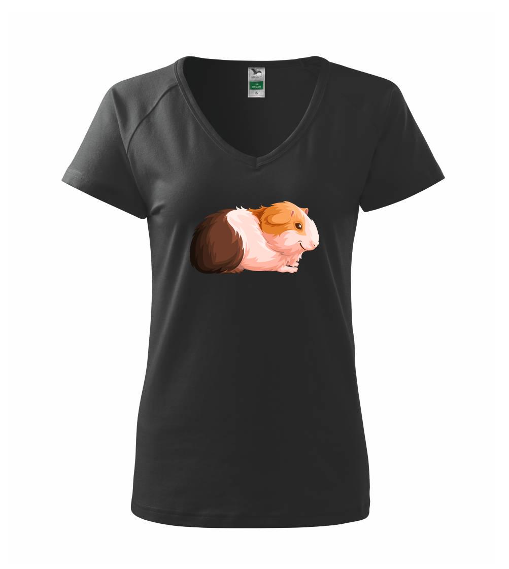 Dámske tričko s ľahko priliehavým strihom, ktorý pôsobí elegantne a skvele padne. Tento typ trička má kratšie rukávy a hlbší výstrih zakončený jemným lemovaním.