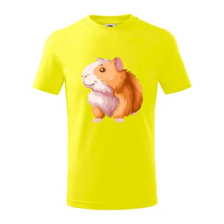 Detské tričko strednej gramáže s bočnými švami. Úzky priekrčník s prídavkom 5% elastanu. Vnútorná časť zadného priekrčníka začistená tkanou páskou. Spevnený ramenný šev.