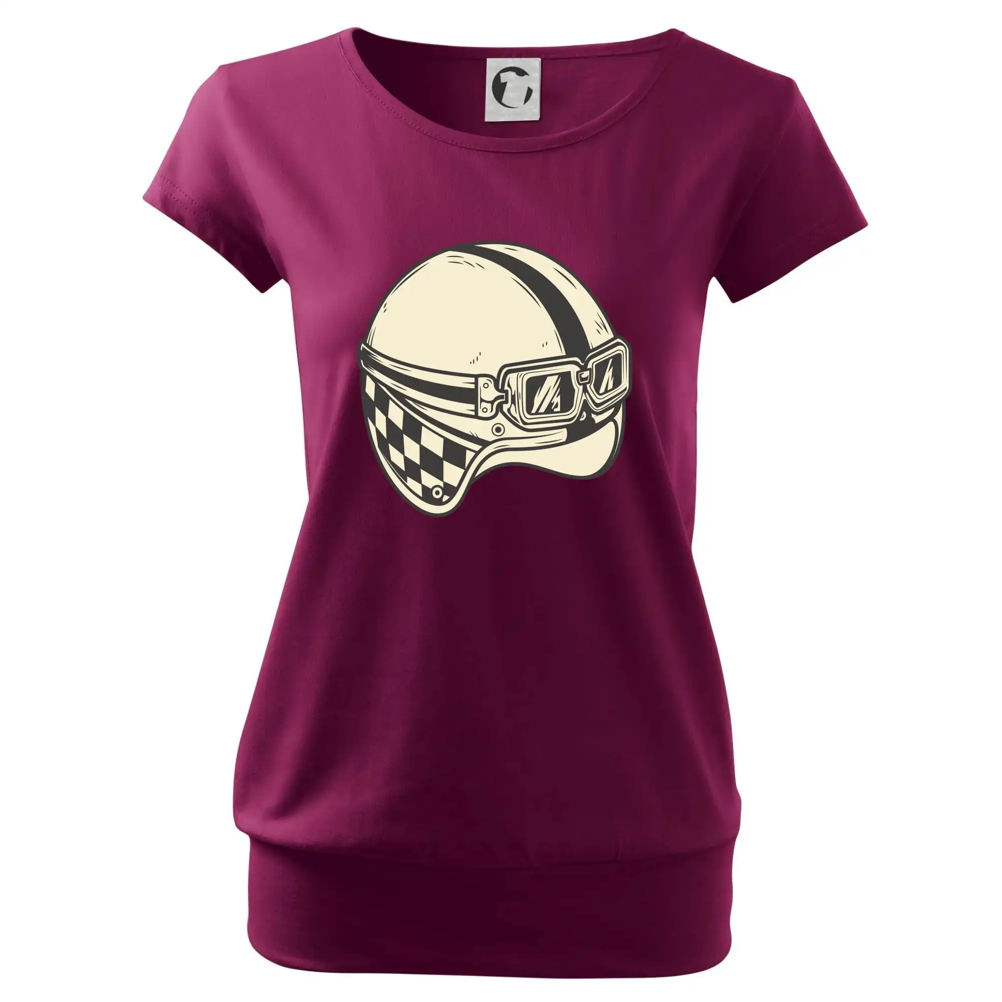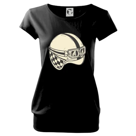 Trendové dámske tričko s veľmi krátkym rukávom, voľnejšieho strihu, v dolnom kraji všité do širokého lemu. Okrúhly priekrčník s úzkym lemom zo zhodného materiálu.