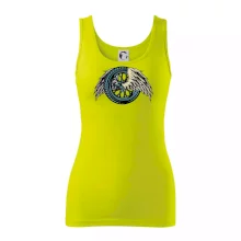 Ramená spevnené všitým prúžkom. Tričko siaha do hĺbky bokov. Silikónová úprava zabezpečuje mäkký a splývavý omak.