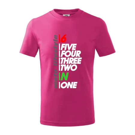 Detské tričko strednej gramáže s bočnými švami. Úzky priekrčník s prídavkom 5% elastanu. Vnútorná časť zadného priekrčníka začistená tkanou páskou. Spevnený ramenný šev.