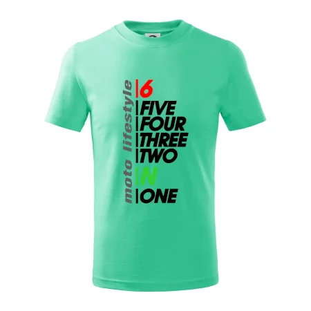 Detské tričko strednej gramáže s bočnými švami. Úzky priekrčník s prídavkom 5% elastanu. Vnútorná časť zadného priekrčníka začistená tkanou páskou. Spevnený ramenný šev.