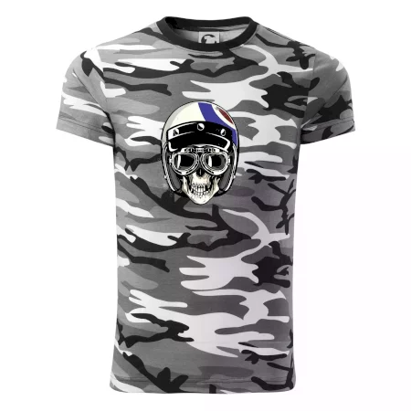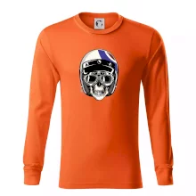 Tričko pre motorkára, na ktorom je lebka s helmou, je skvelý darček pre motorkára. Motorkárska helma ochráni lebku kostlivca aj tú Tvoju. Každý motorkár bude mať toto tričko s lebkou rád. Moto lebka na Tvojom tričko ukáže , že si motorkár až na kosť.