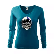 Tričko pre motorkára, na ktorom je lebka s helmou, je skvelý darček pre motorkára. Motorkárska helma ochráni lebku kostlivca aj tú Tvoju. Každý motorkár bude mať toto tričko s lebkou rád. Moto lebka na Tvojom tričko ukáže , že si motorkár až na kosť.