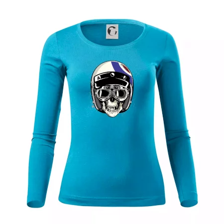 Tričko pre motorkára, na ktorom je lebka s helmou, je skvelý darček pre motorkára. Motorkárska helma ochráni lebku kostlivca aj tú Tvoju. Každý motorkár bude mať toto tričko s lebkou rád. Moto lebka na Tvojom tričko ukáže , že si motorkár až na kosť.